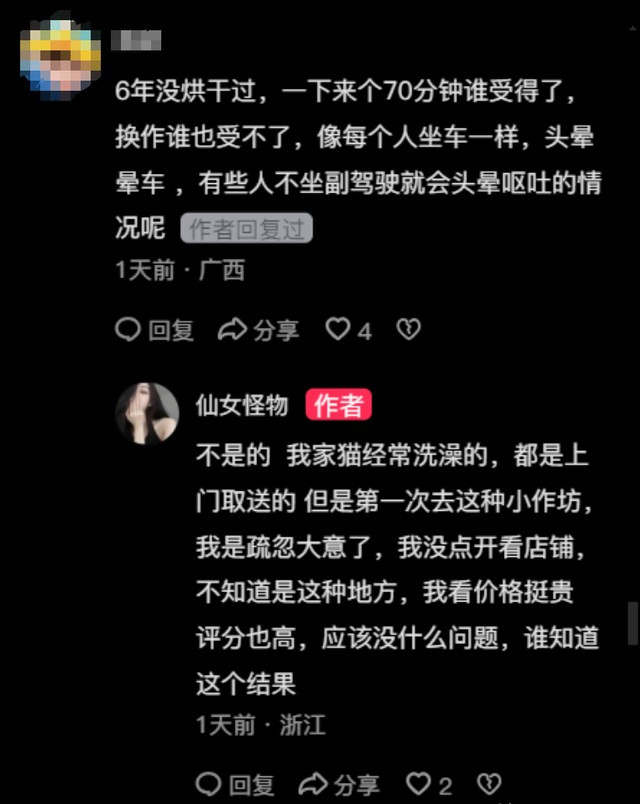 老板经过这件事,可以在洗猫后,增加看猫咪的次数,时不时和猫咪互动下,这样或许能在猫咪出事时,第一时间留意到,避免出现类似情况。