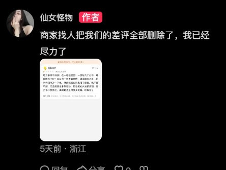 此外,她还表示,老板将店铺下所有的差评给删掉了,并且正常营业,而她则去了医院,经过医生检查,她患上了重度抑郁,有自杀倾向,需要人看护,她之后会好好配合医生治疗。