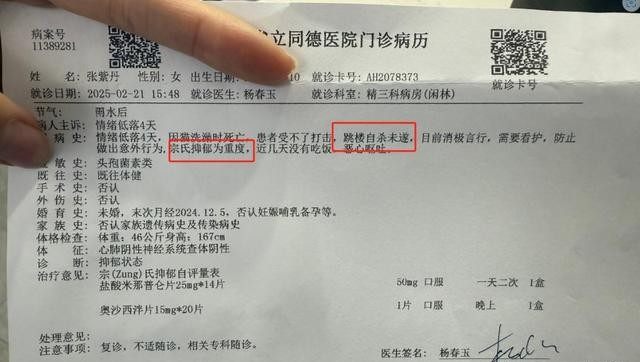 甚至,张紫丹还出现了消极的情绪,觉得活着太累了,想要解脱,曾试图用跳楼结束自己的生命,不过最终自杀未遂。