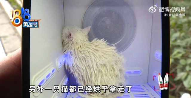 在老板发现猫情况有异时,贝贝已经不会动弹了,按理说,遇到这样的情况,老板该在第一时间将猫送到宠物医院,可他却将猫放在台子上,用吹风机给它吹毛。